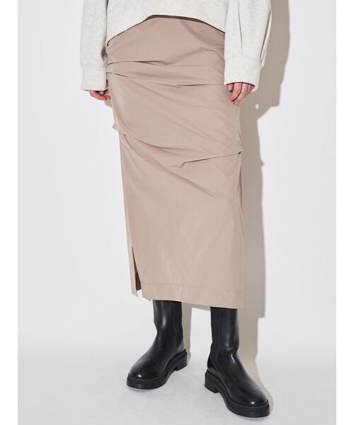 ASYME TUCK I-LINE SK すっきりとしたIラインシルエットのタフタスカート。 サイドでアシンメトリーにタックを取りニュアンスのある見え方に。 タックの効果で体のラインを拾いすぎないのもうれしいポイント。 サイドにベンツがあいており足さばきも〇 デザイン性がありつつもコンパクトなシルエットに仕上げているのでボリュームのあるトップスやアウターと合わせたスタイリングもおすすめ。 ・・・・・・・・・・・・・・・・・・ 透け感:なし 裏地:なし 伸縮性:なし 生地の厚さ:やや薄い洗濯:手洗い可 ・・・・・・・・・・・・・・・・・・【 お買いものにおすすめの便利機能! 】▽商品のお気に入り登録完売カラーの再入荷時や、ラスト1点の時、セール開始時にお知らせします。 ▽ブランドのお気に入り登録新商品や再入荷、セール情報など、いち早くブランドのお得な情報を受け取ることができます。ぜひご活用ください。 ※実際にお届けする商品と仕様やサイズが異なる場合がございます。また生産の都合上、お届け時期が前後する場合がございます。