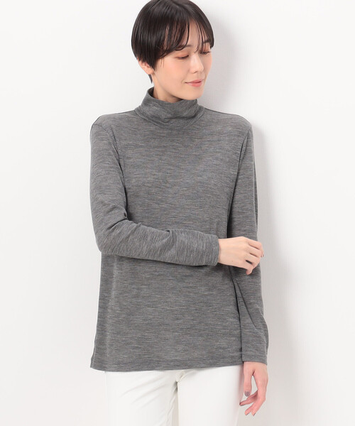 《デザイン》素材の良さが際立つシンプルなハイネックデザインです。裾では多めにし、ふんわりとさせながらも大きく見えないシルエットです。身体のラインに程良くフィットし、インナーとしても一枚で着用しても身体のラインが出過ぎない、大人にうれしいサイズ感です。薄すぎず、厚過ぎない肉感はこれから春先まで長い期間のレイヤードスタイルに欠かせない一着です。上にシャツをレイヤードするのも今年らしくおすすめしたいスタイルです。《素材》ウール/ビスコース混紡糸を使用したフライス素材です。全てトップ糸を使用し、ウール100%よりも軽く、微光沢があるのが特徴です。国内では少なくなった純粋なフライス編機を使用したフライスは原料的にも貴重です。お手入れ方法:手洗い可