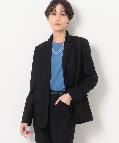 《デザイン》絞りの少ないボックスシルエットながらもスタンドテーラーと、長めの着丈でたてラインを強調しています。マスキュリンなジャケットを軽くしなやかなフラノで女性らしく表現しています。KT独自のテーラリング技術です。凛としながらもふわりと軽い着心地です。薄い肩パッドを使用し、きちんときまりながらもフェミニンさはキープしています。前をあけた時に前端がきれいにおちる独自のシルエットです。メンズライクな前振りの袖で、袖口はベンツあきです。羽襟の外側と玉縁ポケットには合皮(フロリッシモ)を使用しグレード感アップしています。メンズのテーラーをイメージした袖裏、しま裏使い、本水牛釦、ハンドステッチ、ハイグレードなディティールです。《素材》厳選されたウールの美しい光沢と軽さ、しなやかが特徴のK.Tオリジナルフラノです。たてよこ共に伸びる2WAYストレッチフラノです。毛織物では日本一を誇る愛知県で制作した日本の丁寧なものづくりです。触れただけで上質を感じさせる光沢感、軽さと柔らかさがあります。上質なウール原料を使用し、高度な技術で特殊紡績した細い糸を使用しています。2WAYストレッチで着たままお仕事ができる程の抜群の着やすさです。ウール系とポリウレタン糸を特殊な紡績・撚糸で合わせたウールストレッチ糸をたてよこ共に使用しています。あらゆる動きについてゆく伸縮性と膨らみを持たせています。《セットアップ》同素材のパンツ(商品番号96-10PE04-203)・ワンピース(商品番号96-10OE02-203)と合わせて、セットアップとしてお召しいただけます。※在庫がない場合もございますので、予めご了承くださいませ。