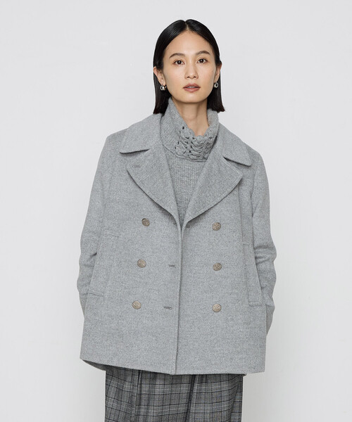 《デザイン》ダブルブレストのトラッドなピーコートをこだわりのシルエットで表現した大人カジュアルな一着です。襟ぐりの抜き具合、刻み位置やラインのバランスなど、ミリ単位につくりスタイリッシュなビックカラーが完成しています。肩先を尖らせず、なだらかにつくる抜け感のあるシルエットです。脇はコンシールファスナー開きです。温度調節ができるのはもちろん、シルエット変化を楽しめる2WAYです。こなれた印象をつくる、艶を抑えたヴィンテージ感のあるメタル釦です。手間がかかり、希少になってしまったすみ入りメッキで本物感を表現しています。トップグレー、セージグリーン、ダークネイビーの三色展開です。《素材》K.Tコートの定番素材である、アンゴラウールショートフリース仕上げです。コート原料としては、最高級素材アンゴラをよこ糸100%に織り上げた超上質素材です。ふんわりした柔らかさと光沢、保湿性に優れています。高級起毛(ショートフリース)仕上げで、毛足を揃え毛羽の乱れがありません。特殊加工を施し生地表面にビロードのような美しい光沢のある表情をプラスしています。