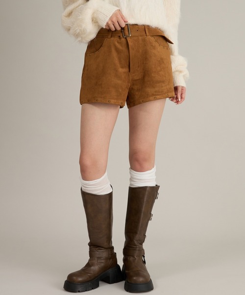 【スタッズで魅せる、秋冬ムード満点の大人ショートパンツ】同日発売のスタッズ&フェイクファー付き中綿ブルゾン(品番:633808)とセットで着用可能◎落ち着いた風合いの素材に、スタッズを装飾された存在感のあるショートパンツ。ウエストには同素材のベルトが付いており、キュッと締めるだけでスタイル良く見えるデザイン。ハイウエストで脚を長く見せてくれるシルエット。裾のカーブラインや細かいディテールが、シンプルながらコーデの主役に。タイトなトップスにロングブーツを合わせて韓国っぽいコーデや、緩めのスウェットを重ねて、カジュアルな抜け感をプラスしたコーデにも!寒い日にはタイツを履いてショートブーツに合わせるのも大人っぽくて◎---------------------------------------伸縮性:あり厚み:普通裏地:なし透け感:なし---------------------------------------※サイトに表示されております商品名とお届け商品についておりますタグの商品名が異なる場合がございますが、実際の商品と相違ございません。※ご覧のモニター環境や撮影環境により実際の商品と多少色味が異なって見える場合がございます。ご理解の程よろしくお願いいたします。【お買い物をよりお楽しみいただく為に♪】▼商品のお気に入り登録をおすすめします♡をクリック!完売カラーの再入荷や、ラスト1点の通知、セールの際の通知を受ける事ができます。ブランドのお気に入り登録もご一緒にお願い致します。