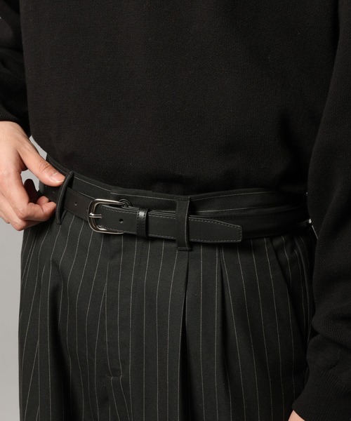 小物からクラシックにお洒落見えーーー■デザインクラシックなデザインのドレスベルトが登場。ヨーロッパ起源のクラシカルなベルトをサンプルにデザインしています。帯の中央部に芯材を入れて、半円型になるようにボリュームを持たせています。スラックスだけでなく、デニムやチノパンツなどのスタイリングにトラッド感をプラス出来ます。ーーー