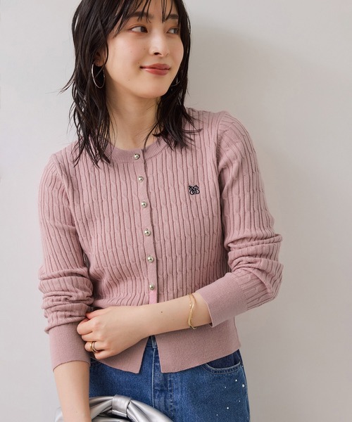 大人のきれいめカジュアルが叶うケーブルニットカーディガン【2025 Autumn/Winter】【25AW】 <POINT> ・細やかなケーブル編みが女性らしく柔らかい印象にしてくれるニットカーディガン ・アクセのいらないキラっとしたメタルボタンが華やかな印象に。 ・1枚で映える胸元にはブランドロゴのワンポイント刺繍で価値観のあるデザイン ・コンパクト目なサイジングは、ケーブル柄で立体感を演出して細見えを演出してくれます。 【デザイン・シルエット】 女性らしいムードを掛け合わせたトラッドで上品さ漂うケーブルニット。 華奢でコンパクトなケーブル柄は、立体感があり高見えしてくれます。インナーを着込んでも、細見えするサイズ感にしているので、着ぶくれせずにレイヤードを楽しめます。 【素材】 柔らかく肌触りの良いニット素材で、今から春までロングシーズン着回せる優秀アイテムです。 手洗い可能。 【カラー】 シンプルなデザインだからこそ、スタイルのポイントとなるカラー展開です。 ボトムを選ばないキナリ、今年らしいカラーリングを演出するブラウン、上品な印象にお仕事にも使いやすいネイビー、顔回りを華やかに冬らしい柔らかな印象のピンクの4色展開です。ボタンのカラーは全てライトゴールド。薄いゴールドの柔らかな色味で上品な印象にしております。 ※刺繍のカラー キナリ(16):ブラウン ダークブラウン(20),ネイビー(40):ホワイト ピンク(63):ネイビー 【おすすめのスタイリング】 1枚でトップスとして着用するのも女性らしく華奢な印象に演出できます。 今シーズンはシャツとレイヤードしたスタイリングもおすすめ。ジャケットのインに釦をポイントにして使って頂くのもかわいく着こなして頂けます。デニム合わせはもちろん、前ボタンを閉めて1枚着として着用し、ジャケットを羽織ったり、スラックスやショートパンツ、スカートを合わせたトラッドスタイルもおすすめ。 ----------------------------- 裏地:なし 光沢感:なし 透け感:ややあり 伸縮性:あり ポケット:なし ボタン:あり(開閉可) 生地の厚さ:普通 その他仕様:左胸元に刺繍ロゴあり 季節:春、秋、冬 ----------------------------- 【モデル着用サイズ】 身長:161cm 着用サイズ:F ※画像の商品はサンプルです。実際の商品と仕様、加工、サイズが若干異なる場合がございます。 ※画像によっては実際の色味と異なる場合があります。正しい色味は生地アップ画像をご確認ください。