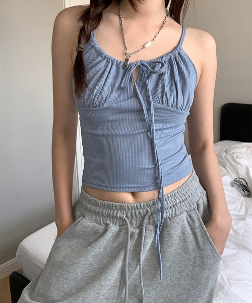 """【 レースアップ フリルギャザー キャミソール 】\ 一枚でもレイヤードしても可愛い、韓国スタイルを叶えるレースアップキャミソール /■ポイント-フェミニン×カジュアル-胸元のレースアップはリボンで調整-Tシャツやトップスと重ねたレイヤードスタイルに。◼︎おすすめコーデ太めのデニムやナイロンパンツと合わせたカジュアルコーデ、スウェットパンツやカーゴパンツで韓国ストリートミックスに。ショートパンツやローライズのパンツと合わせたY2Kファッション、バルーンスカートやプリーツスカートと合わせたバレエコアスタイルなど、幅広いスタイルをお楽しみいただけます♡※商品画像は撮影時の光や角度により、実物の色味と異なって見える場合がございます。※撮影はサンプル品を使用しており、実際の商品と仕様・加工・サイズが若干異なる場合がございますので、予めご了承ください。※また、生産時期によりサイズやカラーに誤差が生じる場合がございます。予めご了承くださいませ。【 MEMECLE 】韓国ストリートやカジュアルスタイルのトレンドをミックスしデイリーに着やすい洋服から特別な日に着れるスタイルまで幅広く提案したブランドです。「これ一枚で可愛い」を叶えます。★商品のお気に入り登録完売カラーの再入荷や、ラスト1点のお知らせ、セール情報などの通知を受け取ることができます。★ブランドのお気に入り登録新商品や再入荷など、お得な情報をいち早く受け取ることができます。-ブランドの最新情報はinstagram【@memecle_official】でご確認いただけます!CZ_0002"""