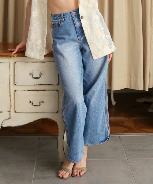 【ohnishi ai×Donobanコラボ】 サイドスリットデニム[C] ■商品説明 リラクシーなシルエットが魅力のデニムパンツ。 裾にスリットを施し、動きに合わせて揺れる軽やかな表情をプラス。 ヴィンテージライクなウォッシュ加工と直線的なラインが美しく、 モード感のある印象に仕上げています。 股上は深めで安心感があり、 腰回りをすっきりと見せつつ足長効果を演出。 カジュアルなTシャツはもちろん、 ジャケットやシャツと合わせれば洗練された大人のスタイリングが完成します。 シンプルながらも裾のデザインが一歩先のこなれ感を演出し、 シーズンレスで着回せる万能アイテム。 ジャケットとセットアップ風に合わせるのもおすすめです。 ■プロフィール 大西亜依 モデル・女優として活動し、2025年には自身初のスタイルブックを出版、香水ブランド「LEn」のディレクターも務める。 InstagramやTikTokではファッションを中心に発信し、同世代女性から支持を集める人気インフルエンサー。 ■生地感 透け感:なし、裏地:なし、伸縮性:なし、ポケット:5 ~*~*~*~*~*~*~*~*~*~*~*~*~*~* ▼ 商品のお気に入り登録 ▼ 完売カラーの再入荷通知や、ラスト1点の通知、 セールの通知も受け取ることができます。 ぜひご登録ください♪ ▼ ブランドのお気に入り登録 ▼ 新商品や再入荷など、 ブランドのお得な情報をいち早くお知らせ! ぜひご登録ください♪