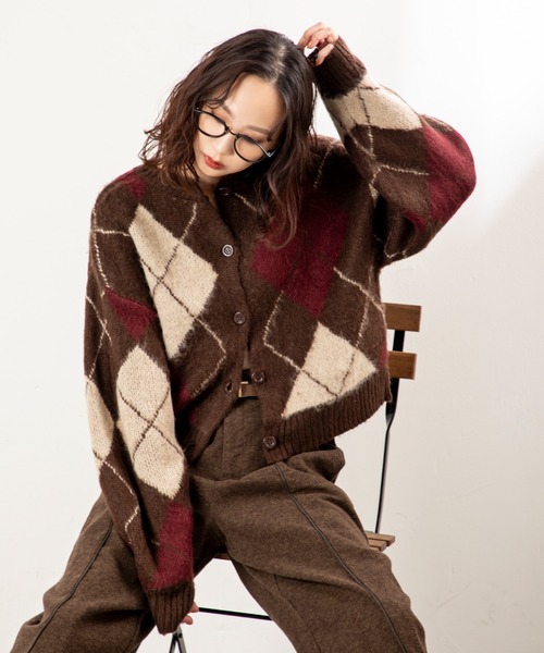 ふんわりとした軽さと温もりを両立した、アクリルモヘア素材のアーガイルニットカーディガン!どこから見ても美しいアーガイル柄で、休日も通勤も大人の余裕を感じさせる一枚。