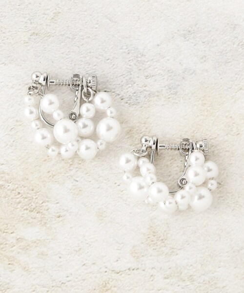 フェイクパールリングがどんなコーディネートにも合うイヤリング 【デザイン】 メタルリングにフェイクパールを配した、さりげない可愛さと上品さを両立。 【着こなしポイント】 ニットやブラウスで顔周りを品よく整え、ジャケット×細身パンツやワンピで活躍。 ※照明の関係により、実際よりも色味が違って見える場合があります。また、パソコン・スマートフォンなどの環境により、若干製品と画像のカラーが異なる場合もございます。 店舗へのお問い合わせ商品番号:C71-35502 ●製品寸法: 00:モチーフH2cm モチーフW0.7cm モチーフD1.5cm 備考: