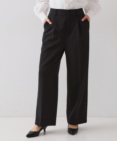 OPAQUE.CLIP NAVYDELEGANT(デレガント)社製の素材を使用したワイドパンツ【デザイン】・通勤にはもちろん、学校行事やオケージョンシーンにも対応できるシンプルなワイドパンツ。・落ち感のきれいなワンタックデザイン。・後ろの中心にゴムが配されており着心地も◎・ベルトループ付きなのでベルトを合わせた着こなしも可能です。・サイドと後ろにポケットつき。【素材】・素材メーカー、DELEGANT(デレガント)社の仕立て映えするダブルクロス素材を使用。・マシンウォッシャブルでお手入れも簡単です。【仕様】・ポケット数:横×2 後ろ×2・前ファスナー・ウエスト後ろゴム・ショート丈の裏地あり※ライトベージュ(051)はやや透け感があります。同素材のジャケット(637-41002、637-41003)とセットアップで着用できます。この商品の表地はフランスで企画し、中国で製造された生地を使用しています。---------------【OPAQUE.CLIP NAVY/オペーク ドット クリップ ネイビー】「ハレの日の特別な装い」をコンセプトに、想い出に残る大切なワンシーンを彩るアイテムを提案するレーベル。通勤からセレモニー、パーティー等のシーンに対応した、良質感と華やかさのあるスタイルを提案します。※照明の関係により、実際よりも色味が違って見える場合があります。また、パソコン・スマートフォンなどの環境により、若干製品と画像のカラーが異なる場合もございます。モデル情報:身長162cm B83 W60 H84 着用サイズ:38(M)店舗へのお問い合わせ商品番号:637-65009●製品寸法:34(SS):W63cm H96cm 股下65cm 渡り幅31cm 裾幅25cm 総丈95cm36(S):W66cm H99cm 股下65cm 渡り幅32cm 裾幅25cm 総丈96cm38(M):W69cm H102cm 股下66cm 渡り幅33cm 裾幅26cm 総丈97cm40(L):W72cm H105cm 股下68cm 渡り幅34cm 裾幅27cm 総丈100cm42(LL):W75cm H108cm 股下68cm 渡り幅35cm 裾幅28cm 総丈100cm備考: