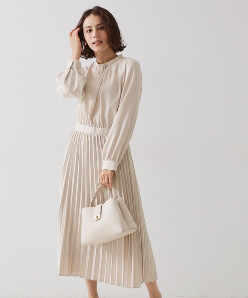 OPAQUE.CLIP NAVY軽やかなジョーゼット素材で仕上げた、上品なプリーツワンピース【デザイン】・ウエストを切り替えたデザインで、バランスよく着こなせる一枚。・スカート部分をプリーツデザインにし、華やかな印象に。・フロントデザインにアシンメトリーなタックで上品な華やかさをプラスし、一枚ではもちろん、ジャケットを羽織っても映えるデザイン。・お仕事やお出かけにはもちろん、ジャケットを羽織れば、入学式・卒業式などのセレモニースタイルにもぴったりです。・ウエストの後ろにはゴムを配しており、フィット感と着心地も◎・後ろファスナーを開けて着脱するデザインです。【素材】・軽やかなジョーゼット素材を使用。・マシンウォッシャブルでご家庭でのお手入れが可能です。【仕様】・ポケットなし・後ろファスナー・スカート部分のみ裏地つき※裏地のない部分はやや透け感があります。---------------【OPAQUE.CLIP NAVY/オペーク ドット クリップ ネイビー】「ハレの日の特別な装い」をコンセプトに、想い出に残る大切なワンシーンを彩るアイテムを提案するレーベル。通勤からセレモニー、パーティー等のシーンに対応した、良質感と華やかさのあるスタイルを提案します。※照明の関係により、実際よりも色味が違って見える場合があります。また、パソコン・スマートフォンなどの環境により、若干製品と画像のカラーが異なる場合もございます。モデル情報:身長162cm B83 W60 H84 着用サイズ:38(M)店舗へのお問い合わせ商品番号:637-55017●製品寸法:36(S):着丈115cm B107cm 袖丈56cm 肩幅37cm W68~93cm38(M):着丈116cm B110cm 袖丈57cm 肩幅38cm W71~96cm40(L):着丈119cm B113cm 袖丈58cm 肩幅39cm W74~99cm42(LL):着丈119cm B116cm 袖丈59cm 肩幅40cm W77~102cm備考: