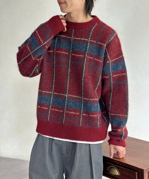 シーズンムード高まるチェック柄ニット!カジュアルながらも上品さがあり、普段の着こなしをワンランクアップさせてくれるニット。シンプルなボトムスと合わせるだけで、こなれ感のあるスタイリングが完成します◎網目がハート柄になっているのもさりげないポイントです!【POINT】・クリスマスっぽいカラーリング・網目部分がハートになっている・ユニセックスで着用可能【STYLING】・カーゴパンツと合わせて、カジュアルでメンズライクな着こなしに・スカートと合わせて、古着ライクな着こなしに【KEYWORD】冬服※生産の都合上、お届け時期が前後する場合がございます。ご注文いただいた予約商品のお届け時期の確認は、注文履歴ページより行えます。※お色物は色移りする可能性がございます。着用、お取り扱いは商品についておりますアテンションタグを必ずご確認ください。※商品画像はサンプル品を使用しているため、実際の商品と仕様、加工、サイズが若干異なる場合がございます。また、可能な限り実物に近いカラーにて掲載していますが、使用しているパソコンのモニター設定や、携帯電話のメーカー・機種により実際のカラーと異なって見える場合がございます。予めご了承ください。***********************商品の特徴透け感:なし裏地:なし伸縮性:あり光沢感:なし生地の厚さ:厚め洗濯・取り扱い洗濯:液温は40 ℃を限度とし、手洗いができるクリーニング:非常に弱い操作によるウエットクリーニングができるタンブル乾燥:タンブル乾燥禁止アイロン:アイロン仕上げ禁止***********************