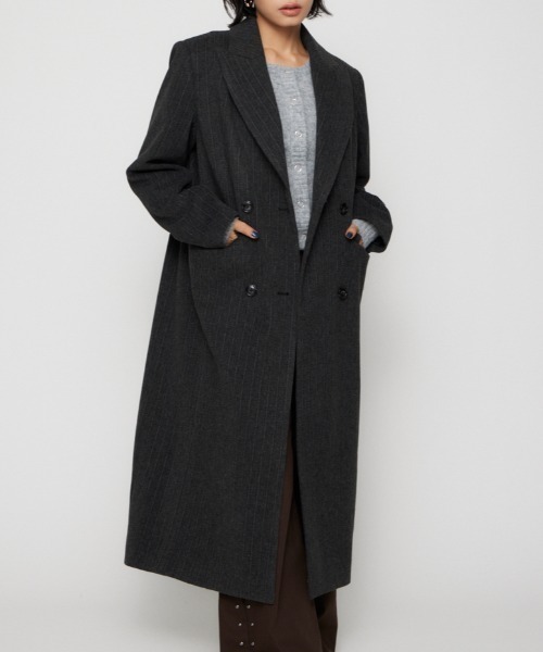 ■POINT:マニッシュな印象のダブルボタンのロングコート。 ショルダーパッドが入ったボックスシルエットがポイント。 ■DETAIL:生地の重厚感があり高見えするアウター。 ■STYLING:スラックスなどで綺麗めなスタイリングはもちろん、パーカーを合わせてカジュアルな合わせもおすすめです。 ■透け感:なし ■光沢感:なし ■伸縮性:少しあり ■裏 地:あり ※本品は型崩れ防止や立体的なシルエット構築の為、毛芯を使用してます。 汗や湿気が内部にこもると劣化を早める可能性がある為、通気性の良い環境での保管をお勧めします。 _____________________ LAGUA GEM(ラグア ジェム) ー媚びない強さとしなやかな女性らしさが共存するスタイルー カジュアルなアイテムにストリート&ヴィンテージテイストをミックス メンズライクになりすぎない女性らしさとバランス感のある着こなしにこだわった新しいカジュアルスタイルを提案 _____________________ ▼商品のお気に入り登録 お気に入りアイテムの値下げ・再入荷・在庫1点などの通知を受け取ることができます。 ▼ブランドのお気に入り 登録新商品や再入荷、セール、クーポン配布などお得な情報を受け取ることができます。 AUTUMN & WINTER ( 秋服 / 冬服 )