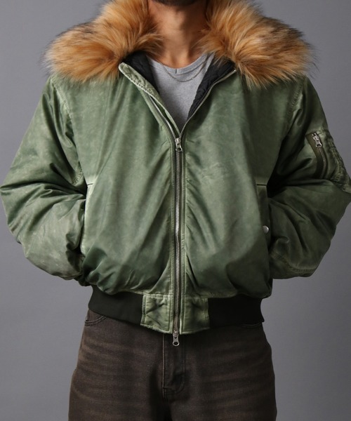 【無骨な存在感と旬のヴィンテージ】 フードタイプ品番:101728388 ■point 襟元のファーが着脱できる2WAY仕様のフライトジャケット。 トレンドの色褪せ加工によるヴィンテージな風合いが魅力で、 羽織るだけでストリートにも古着MIXにも馴染む存在感。 防寒性とデザイン性を兼ね備えた、秋冬の主役アウターです。 ■design ベースはクラシックなフライトジャケットを現代風にアップデート。 衿のファーは取り外し可能で、外せばPUレザー仕様のスタンドカラーに早変わり。 シーンや気温に合わせて表情を変えられる万能デザインです。 フロントは上下どちらからも開けられるダブルZIP仕様。 着こなしの幅を広げるだけでなく、重ね着にも便利な仕様です。 ■fabric 表地はタフでハリのある素材を使用し、長く着られるしっかりとした質感。 内側はダイヤキルト仕様の中綿ライニングで、高い防寒性を実現。 寒い季節のストリートシーンでも快適に過ごせる保温力を備えています。 さらに、トレンドのヴィンテージ加工で程よい色ムラを演出。 着込むほどに味が出る、唯一無二の風合いを楽しめます。 ■silhouette ボリューム感のあるワイドシルエットで、今季らしいルーズなバランスに。 ゆったりとしたアームラインがレイヤードにも最適で、 スウェットやパーカーをインしてももたつかず快適。 ミリタリー由来の無骨さを残しながらも、 現代的なシルエットで洗練された印象に仕上げています。 ■coordinate ・カーゴパンツやデニムで定番のストリートスタイルに。 ・ブラックパンツと合わせてモードライクなY2Kコーデにも◎。 ・ジョガーやワイドパンツで古着MIXスタイルに落とし込むのもおすすめ。 ・ファーを外せば春先まで使えるライトアウターとしても活躍。 ・キャップやスニーカーを合わせて、都会的なミリタリースタイルを完成。 ヴィンテージ加工 フライトジャケット メンズ ファー脱着 ダブルZIP 中綿 キルティング ミリタリー ブルゾン ------------ ■■■もっとお得にお楽しみいただくために■■■ 【商品のお気に入り登録】 再入荷通知や、ラストの通知、セール通知も受け取ることができます。 【ブランドのお気に入り登録】 新商品や再入荷など、お得な情報を受け取ることができます! ※他のキャンペーンにより、期間中に価格が変動する場合があります。 ※セールは予告なく終了させていただく場合もあります。 ------------ ※ご覧いただいている環境によっては、実際のカラーと異なって見える場合がございます。あらかじめご了承くださいませ。
