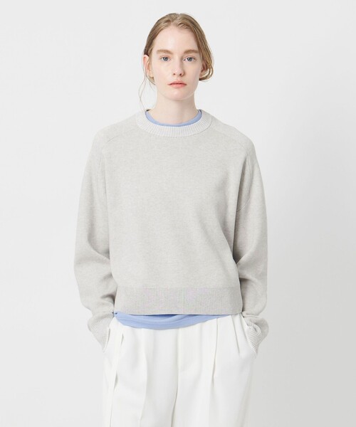 一枚着からレイヤードまで。配色リブがポイントのニットプルオーバー■デザイン襟と袖口に施した配色使いのリブがアクセントのプルオーバーニット。ゆとりのあるリラックスシルエットと両脇のスリット開きが、程よいニュアンス感を与え、レイヤード着用もしやすくなっています。■素材柔らかな肌触りと、優しくふっくらとしたタッチが魅力のコットンカシミヤのミックス素材を使用。ほっこりとなりにくく、すっきりとしたスムース編地で表も裏も滑らかな表情に仕上がっています。襟と袖口には、光沢感の美しいキュプラ素材を配色で編みこみました。■コーディネートハイウエストのワイドパンツなどのきれいめなアイテムから、カジュアルなデニムまでボトムを選ばずに重宝いただける一着。ワイドシルエットを活かして、タイトスカートやミニマムボトムと合わせたコントラストも素敵です。一枚着からワンピースやシャツとのレイヤードまで幅広く活躍いただけます。============================裏地:なし透け感:なし光沢感:なしケア方法:ドライクリーニング============================【注意事項】※商品に「取り扱い上の注意書き」、「洗濯表示」がございます場合は、使用前に必ずご確認ください。※商品画像は、光の当たり具合やパソコンなどの閲覧環境により、実際の色味と異なって見える場合がございます。あらかじめご了承ください。※商品の色味の目安は、商品単体の画像をご参照ください。※画像の商品はサンプルです。実際の商品と色味、仕様、加工、サイズ、素材等が若干異なる場合がございます。店舗へお問い合わせの際は、全国のUNITED ARROWS各店舗まで下記の品名/品番をお申し付けください。品名:AM SMOOTH BI/COL 品番:87131830005