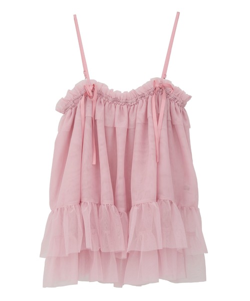 裾に向けて広がるティアードシルエットに仕上げたチュールを使用したベビードール。肩紐はアジャスター付きでお好みのバランスに調整可能。タートルネックなどのインナーの上からレイヤードはもちろん、スウェット等の裾からチュールを見せる着こなしもオススメ。スタイリングのアクセントにぴったりな万能アイテムです。・ ・・・・・・・・・ ・・・・・・・・・透け感:あり・伸縮性:あり・生地の厚さ:薄手・裏地:なし・ ・・・・・・・・・ ・・・・・・・・・アイボリー、ピンク、ラベンダー、ブラック/黒の4色展開【サイズ展開】・FREE(フリーサイズ)#カジュアル#ガーリー#リボン#チュール#レイヤード#キャンスト#キャンスパ#CND●Candy Stripper/キャンディストリッパー●-BRAND CONCEPT-NO RULE, NO GENRE, NO AGE年齢や性別にとらわれず、自由に自分を表現出来る服【お買い物をもっとお楽しみ頂くために】▼商品のお気に入り登録▼完売カラーの再入荷通知や、ラスト1点通知、プライスダウンしたセール通知も受け取れる♪▼ブランドのお気に入り登録▼新作や再入荷等、いち早くブランドのお得な情報が受け取れる♪