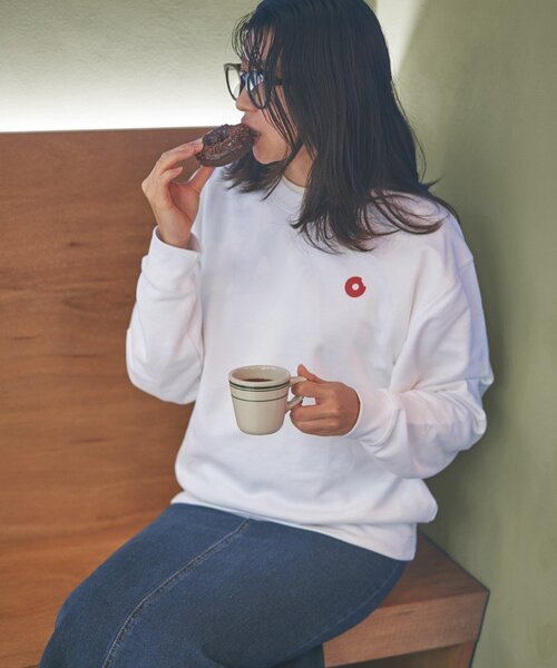 BIRTHDAY BARが作った架空のドーナツ屋さん「B-DAY DONUTS」のスウェットドーナツ屋の店員さんがユニフォームとして着用している姿をイメージして作ったスウェット。胸元にはドーナツのシルエットモチーフのワンポイントアクセントを、背中にはポスター風のアートが載ったデザイン。ゆったりなフリーサイズで幅広い体形にフィットし、中にシャツを着て重ね着をしても◎ベーシックカラーなのでどんなお洋服にも合わせやすく、コーディネートの幅が広がります。〇サイズ:フリー(Lサイズ相当)身丈:約71c m、身幅:約58cm、肩幅:約52cm、袖丈:約60cm【B-DAY DONUTS(ビーデイドーナツ)】市内の路地裏でひそかに開店準備が進む、“まだ誰も知らない”小さなドーナツ専門店をモチーフにしたスーベニアライン。BIRTHDAY BARオリジナルの架空ショップシリーズで、身につけるだけで思わず“食”を連想してしまうようなポップなアイテムを展開。