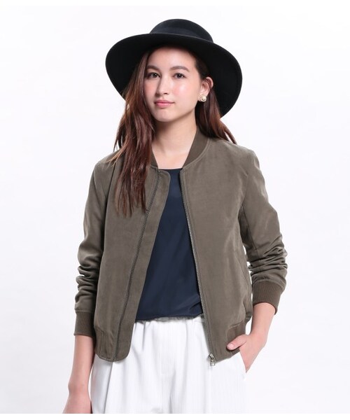 【着まわし力抜群の優秀アウターをワードローブにオン】ポリエステル×ナイロンの起毛感のある素材を使ったジップアップブルゾン。襟ぐりや袖口、裾にはリブを施して心地よいフィッティングを叶えました。落ち着いた印象で着こなせるベーシックカラーで展開しています。華やかなカラーのインナーを差し色に使ってもグッドバランス。