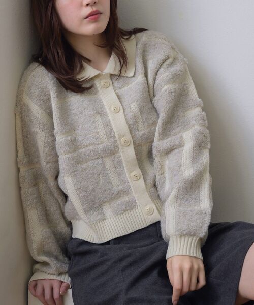 <特徴的な柄が目を惹く襟付きニットカーデ>▼デザインモコモコとした素材が暖かいニットカーディガン。襟付きで綺麗目なスタイリングもお任せ〇ツイードライクな見た目ですが、カジュアルに着て頂けるのがレトロらしいデザイン。トップス使いがおすすめですが、もちろん羽織スタイルで気温調節に取り入れても◎▼コーディネートコーデに取り入れるだけで華やかな印象になる個性的な柄ニットカーディガン。インナーにリブハイネックを取り入れるととっても暖かい♪------------------------------生地感:普通伸縮性:ある透け感:なし裏地:なし------------------------------▼ブランド紹介RETRO GIRL (レトロガール)自分らしい“ベーシックアイテム”と新しい自分の”トレンドアイテム”が見つかる場所今らしいファッションを楽しむ女性のためのブランド#冬コーデ #冬アイテム #ニット #ポロニット #柄二ット #ツイード #襟ニット #ニットカーディガン #カーディガン▼注意事項※撮影環境やモニター環境によって実際の商品とお色味が多少異なってみえる場合がございます。品番:RU541512T002 / 品名:ツイード風襟付きカーデ