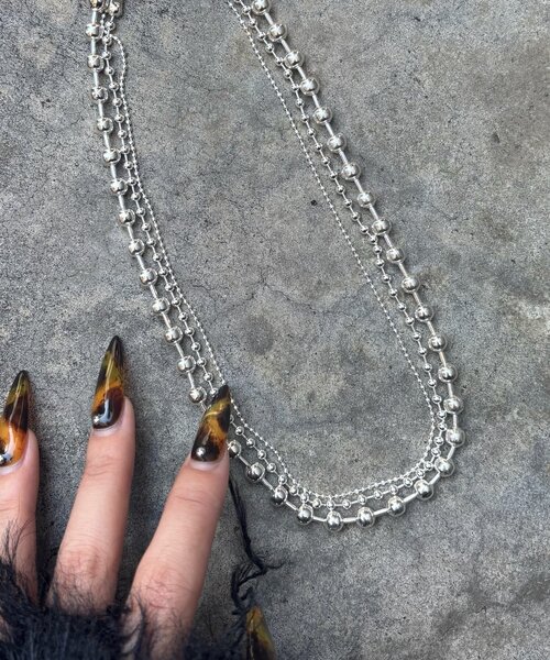 TRIPLE BALL NECKLACE/3連ボールネックレスきらめくシルバーの三重奏。デコルテにリズムを奏でる、3連ボールネックレス■デザイン・3連のボールチェーンが首元を華やかに彩るネックレス。・シンプルなデザインながらも存在感があり、普段のコーディネートにプラスするだけでこなれ感を演出。・カジュアルからきれいめまで、幅広いスタイルに合わせやすいアイテムです。■その他※撮影環境やご覧のモニター環境によって、実物と多少色味が異なって見える場合がございます。※サイト上のカラー名と、お届け商品に記載されているカラー名が異なる場合がございます。《商品のお気に入り登録》《ブランド登録》がオススメ!■商品のお気に入り登録ハートマークをクリックしてお気に入りに登録。完売カラーの再入荷通知や、ラスト1点の通知、セールやクーポン通知も受け取ることができます。■ブランドのお気に入り登録新商品や再入荷等、いち早くブランドのお得な情報を受け取ることができます。