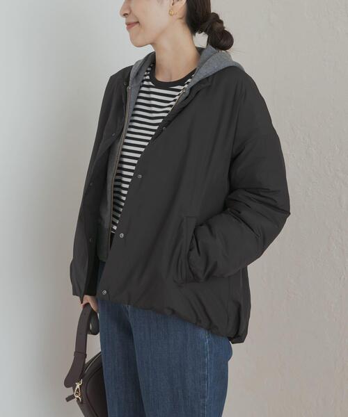 軽量×多機能でロングシーズン活躍する、ウルトラサーモ中綿ブルゾン吸光発熱・吸湿発熱機能を備えた「ウルトラサーモ」中綿を使用した、ポケッタブル仕様の中綿ブルゾン。撥水・花粉防止・静電気防止・ウォッシャブルと、多機能ながら軽量でカーディガン感覚で気軽に羽織れるのが魅力です。付属の専用袋に収納すればコンパクトに持ち運びができ、旅行や外出時にも便利。さらに、身頃内側の小さなポケットに袋をしまえる工夫もプラスしました。丈感は小柄な方から高身長の方までバランスよく着られる設定で、お尻が隠れるシルエットが自然に体型カバーも叶えます。軽めの仕立てなので、単体での着用はもちろん、寒い季節にはコートのインナーとしても活躍。フロントにはさりげない小さめのドットボタンを採用し、カジュアルすぎず少しきれい見えする仕上がりに。機能性とデザイン性を兼ね備えた万能アウターです。【ULTRA THERMO by URBAN RESEARCH/ウルトラサーモバイアーバンリサーチ】「ULTRA THERMO by URBAN RESEARCH」は株式会社アーバンリサーチが独自に開発した素材です。赤外線を吸収して熱に変換されることで、 蓄熱性が高まるため、暖かく感じます。また、「撥水」「防花粉加工」「静電気防止」「マシンウォッシャブル」機能を併せ持った高機能な素材です。【2026 Spring/Summer】【26SS】※商品の特性上、縫い目部分からダウンやフェザー、中綿などの詰め物が出ることがありますので、ご注意ください。※高温多湿を避け、陽の当たらない風通しの良い場所で保管してください。※その他お取り扱いに関しましては、商品に付属のアテンションタグをご覧ください。総重量 : 約270g [収納袋]M : 高さ25cm / 幅19cm※商品画像は、光の当たり具合やパソコンなどの閲覧環境により、実際の色味と異なって見える場合がございます。予めご了承ください。※商品の色味の目安は、商品単体の画像をご参照ください。▼お気に入り登録のおすすめ▼お気に入り登録商品は、マイページにて現在の価格情報や在庫状況の確認が可能です。お買い物リストの管理に是非ご利用下さい。素材感透け感 : なし伸縮性 : なし裏地 : あり光沢 : ややありポケット : ありFREE