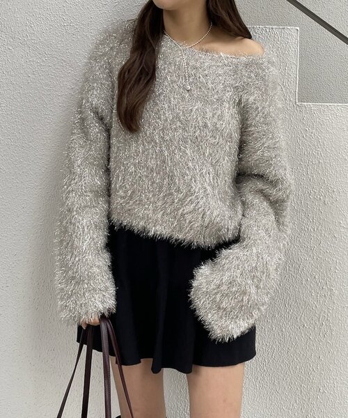 ラメ素材が存在感◎冬の主役シャギーニットが登場!〇商品コメント・目を惹くラメ素材が着るだけで華やかな印象をもたらします。・ふんわりとしたシャギー素材で肌触りもよく、着心地抜群です。・首元は少し広めで、顔まわりをすっきりと見せてくれます◎〇スタイリングポイント・ミニスカートにブーツ合わせでフェミニンな冬のデートスタイルに◎・デニムやスラックス合わせでカジュアルなお出かけスタイルにも。・ジャケットとの相性◎ラメ素材でいつもと一味違う、きちんと感をプラスしたスタイルに。-----------------------------------------------------※洗濯、取り扱い洗濯:40℃限度 手洗いアイロン:低温120℃まで(あて布使用)タンブル乾燥:不可漂白:不可-----------------------------------------------------裏地:なし伸縮性:あり光沢感:なし生地の厚さ:普通------------------------------------------------------商品のお気に入り登録➡お気に入りアイテムの値下げ・再入荷・在庫1点などの通知を受け取ることができます。ブランドのお気に入り登録➡ 新商品や再入荷、セール、クーポン配布などお得な情報を受け取ることができます。※サイト上のカラー名と、お届け商品に記載されているカラー名が異なる場合がございます。※商品の色味は、撮影場所や光のあたり具合などにより色味が違って見える場合が御座います。また、お客様のお使いのPCのモニター環境などにより色味が違って見える場合が御座います。予めご了承の上ご注文下さい。※ご注文いただいた予約商品のお届け時期の確認は、注文履歴ページより行えます。------------------------------------------------------