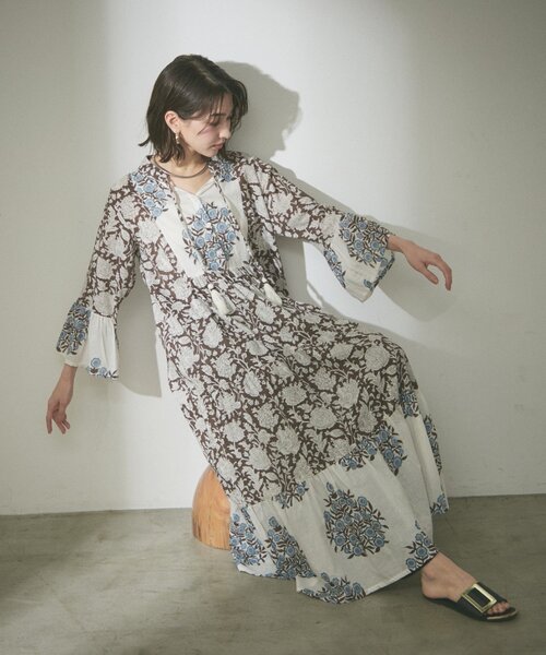 【India series】 2026SS Remind me and forever ■デザイン ・去年人気だったインド綿シリーズの花柄ワンピースが今年も登場! ・風合いと清涼感のあるインドコットンを使用し、暑い季節にも涼し気な品のある一着になっています。 ・ゆったりときれいな落ち感が美しい、大人女子にピッタリの一枚です。 ・レディライクなAラインシルエットでウエストマークもしっかりあるためスタイルアップも叶います。 ・フレアラインの袖がより女性らしさを演出します。 ■Styling フェード感があるので程よくカジュアルな雰囲気で、 ジャケットやシャツなどきれいめなアイテムと合わせてもバランス◎ どんなコーディネートもスタイリッシュに今っぽくなる一枚です。 一枚で着映えするのはもちろん、デニムパンツと合わせてレイヤードした 着こなしも一気にお洒落なムードを演出します。 ■素材 風合いたっぷりなインド綿で、さらっと柔らかい肌触り。 ========================= 洗濯方法:手洗い 透け感:あり 裏地:なし 伸縮性:なし 光沢感:なし 生地の厚さ:薄め 【スタッフコメント】 年齢:20代/身長:153cm/普段着用サイズ:S~Mサイズ サイズ感:低身長の私で丁度良い丈感で足元がチラ見えするサイズ感です。 Aラインから綺麗なシルエットがスタイルアップを叶えてくれます。 ========================= ※この製品はインド製の生地を使用しております。 織りキズ、染めムラがある場合がございますが、商品の特徴の一つとして1枚1枚違った風合いをお楽しみ下さいませ。 ※長時間濡れたままで重ねて置いたり、摩擦(特に湿った状態での摩擦)や、 汗や雨などでぬれた時は他の衣料等に移染する場合がございますのでお気を付け下さいませ。 また洗濯の際は移染する場合がございますので、他の物とは分けて洗って下さいませ。 -INFORMATION- ◆商品のお気に入り登録 ・完売していても再入荷時に再入荷通知を受け取ることができますので、是非ご登録ください♪ ◆ブランドのお気に入り登録 ・新商品や再入荷などの情報を受け取ることができますので、是非ご登録ください♪ ※屋外の光や照明の当たり具合で、実際の商品の色味とカラー別画像の色味に違いが発生する場合がございます。 商品の色味はスタジオ撮影の詳細画像にてご確認ください。 ※ご注文いただいた予約商品のお届け時期の確認は、注文履歴ページより行えます。 ◆返品・キャンセルについて ・着用・洗濯後の返品・ご交換は致しかねます。 ・商品到着後、着用前に商品を確認して頂きますようお願い致します。