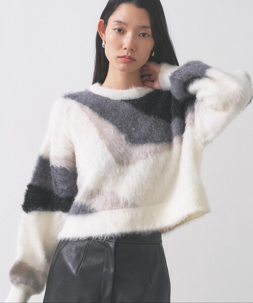 Design Point独自のアート柄が印象的なクロップドニット。ふんわりとした素材感でスタイルに動きを与えます。リラックス感のあるシルエットながら、計算されたラインがアクセントに。Styling Pointワイドパンツやタイトスカートとの相性は◎。リラックスしたシルエットが程よい抜け感を演出し、カジュアルさとモードさを兼ね備えたスタイルに仕上がります。アクセサリーも映えるシンプルなデザインが魅力です。Fabric Point柔らかなシャギー素材が特徴で、軽やかなタッチが魅力です。シンプルながらも存在感のあるスタイルを完成させます。モデル身長:174cm 着用サイズ:38(M)*****************************気になるアイテムは【お気に入り登録】がおすすめ!気になるアイテムのページにある「ハートマーク」をクリックして簡単に追加できます。登録すると、再入荷通知やお値下げ情報をメルマガにてお知らせします。マイページにてお気に入り一覧もチェックできます。*****************************※照明の関係により、実際よりも色味が違って見える場合があります。また、パソコン・スマートフォンなどの環境により、若干製品と画像のカラーが異なる場合もございます。店舗へのお問い合わせ商品番号:523-14417●製品寸法:38(M):着丈46cm B108cm 袖丈51cm 肩幅56cm備考:
