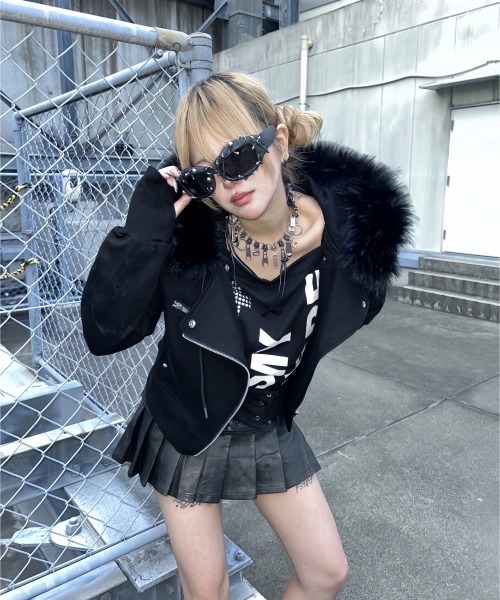 【Never mind the XU】coating pleats skirt / 【ネバーマインド ザ エックスユー】スタッズベルトパンク風プリーツミニスカート