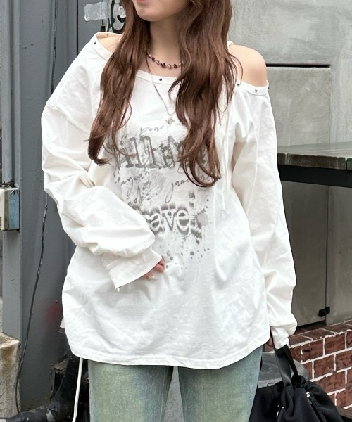 トレンドの韓国ストリート×Y2Kスタイル。この秋冬、持っておきたいのはこの1枚! ▪アイテムポイント ワンショルダーでルーズな抜け感のあるスタッズ輝く長袖Tシャツ☆ ショルダー部分は紐私用のため肩の落とし具合をお好みに調節可能◎ 首元に並べられたスタッズと肩の肌みせが強さとルーズさの強弱を演出☆ フロントに大胆にあしらわれたプリントはグランジ、ストリート感満載! ゆったりとしたシルエットでラフさを叶えつつ、リブ部分がしっかりとシルエットを整えてくれるロンT☆ ウエスト左側には絞りがあり、お好みのスタイルに合わせて調節可能◎ 絞りを強くすれば、ウエスト位置を高く見せられ、スタイルアップ☆ ▪シーン ショッピングやデート、旅行などのお出かけコーデにぴったり☆ ライブなどのイベントシーンでも女性らしさを発揮◎ 通勤、通学のデイリー使いもしやすい1着☆ ▪スタイリング 韓国ファッション、ストリートファッション、y2k、グランジ、ヒップホップスタイルにおすすめ☆ ワイドパンツやカーゴパンツと合わせてストリートスタイルに☆ ミニスカートやショートパンツと合わせて、肌みせギャルコーデに☆ ムートンブーツやロングブーツでy2kスタイルにも◎ 薄手なのでアウターと合わせてもごわつきなく着用可能 ボアジャケットやファーアウターとの相性も抜群☆ 厚み:薄い 透け感:無し 伸縮性:無し 裏地:無し ※着用画像はフラッシュの加減で実際の製品と色味等が異なる場合がございますので、詳細のズームアップ画像をご確認ください。 ※サイズは、測定方法と測定者によって誤差があります。素材に応じて1cm~3cmまでの差も生じます。予めご了承ください。 【Never mind the XU/ネバーマインド ザ エックスユー】 東京、大阪、名古屋、福岡にショップを構えるセレクトショップ "Never mind the XU"(ネバーマインドザエックスユー/エックスユー)と”DOG"(ドッグ)のバイヤーがシンプルからハードまで、多彩なデザインを韓国、中国をはじめとしたアジアや世界中からピックアップしたXU SELECT。 ユニセックス、ジャンルレスなデザインにこだわったアイテムがリーズナブルな価格で手に入ります。 ストリート、モード、カジュアル、綺麗目、シンプル、リラックススタイルなど様々なスタイリングをお楽しみいただけます。 “自分らしさ” の表現が必ず見つかる。そんなラインナップで一期一会の高揚を感じながらお買い物をお楽しみください。 【気になる商品はお気に入り登録がおすすめ】 ▼商品をお気に入り登録!(♥マークをクリック) 完売商品の再入荷やラスト1点の通知、セール開始時にお知らせ! ▼"XU/Chikashitsu+"をお気に入りブランドに登録! 新商品や再入荷など、ブランド最新情報をいち早くお知らせ! 是非、ご活用いただきお買い物をお楽しみください◎