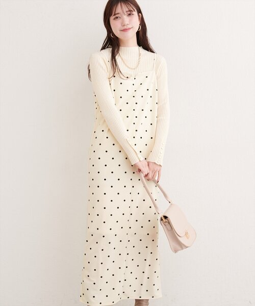 【2026SS natural couture】 カットジョーゼットキャミワンピース■DesignVネックラインが、デコルテを美しく見せ、女性らしさを引き立てます。ストンと落ちるIラインシルエットは、ボディラインを拾わず、リラックスした着心地ながらもスタイルアップ効果が期待できます。肩紐はアジャスター付きで、お好みの長さに調整可能。身長やインナーに合わせて、バランスの良い着こなしを楽しめます。シンプルながらも洗練されたデザインで、どんなアイテムとも相性抜群です。■Stylingカットソーやニットとレイヤードして、普段使いに。シアートップスやレースブラウスと合わせて、華やかな印象に。足元は、スニーカーでカジュアルに、ブーツやパンプスでエレガントに。これからの季節には少しゆとりのある羽織や、シャギーカーディガンなどと合わせるときれいめに可愛く着ていただけます。■Fabricさらりとした肌触り。※サイズ補足 ウエスト92㎝/ヒップ98㎝※サイズ表記の【総丈】は弊店スタッフが採寸したものです。アジャスターにて長さをご調節いただけます。お届けする実際の商品と表記寸法の間に多少の誤差が生じる場合がございます。何卒ご理解下さいますよう、お願い申し上げます。==================お手入れ方法:マシンウォッシャブルポケット:なし透け感:なし裏地:グレイッシュベージュ・ドットあり伸縮性:ややあり光沢感:なし生地感:さらりとした生地感==================※着用、お取り扱いの際は、商品に付いている品質表示とアテンションタグを必ずご確認ください。【お気に入り登録でお得な情報がいっぱい】・「商品のお気に入り登録」で再入荷通知や、ラスト1点の通知、セール通知をいち早く受け取ることができます。・「ブランドのお気に入り登録」で新商品や再入荷など、お得な情報を受け取ることができます!※店舗の入荷時期は商品によって異なります。店頭の在庫状況につきましては各店舗にてお問い合わせください。※撮影時の光の関係で、画面上の画像と実際のお色とでは若干の色差が生じる可能性がございます。また、ご覧いただいているモニター画面や、お使いのブラウザによっても、お色の違いがございますことをあらかじめご了承くださいませ。202511282026SS_natu26SS