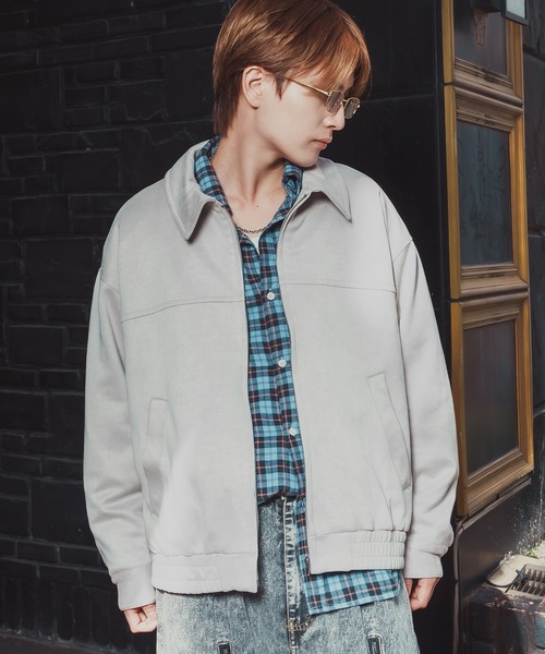 温かみのあるカットスエード素材とトレンドのボリュームシルエットを組み合わせた、スイングトップジャケット。トレンド感のあるゆったりシルエットが今どきのスエードブルゾンです。●落ち着いたマットな質感で、上品かつ大人っぽい印象のスエードタッチ素材を使用●肩落ちするオーバーサイズとゆったりした身幅が、今年らしいビッグシルエットを実現●首元は襟付きのスイングトップデザインで、カジュアルながらもきれいめな印象●袖口はスナップボタン付きのカフス、裾はシャーリングゴム仕様で、メリハリのあるシルエットにシンプルなデザインでストリートはもちろん、大人カジュアルや古着MIXにもぴったり。柔らかく暖かみのある素材感、優しいカラーリングはシーズンムードを高めます。男性はもちろん、女性にも着ていただきたいユニセックスデザイン。