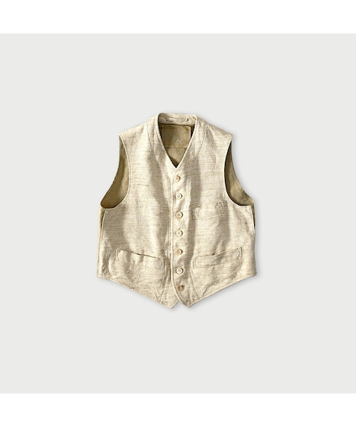 ざっくり凸凹味わい深いツイード綿と麻を紡いでできた糸は、節や植物のかけらが混ざったり、太さが違ったりとても可愛いのですが、織り上げるには技術と時間が必要です。より着心地よく、扱いやすく、私たちらしさも織り込んで、エレガントなツイードが出来ました。いつもより更に素敵な着こなしに。ノーカラーですっきり着られるトラディショナルなベストです。