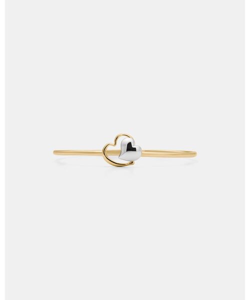 バレンタインギフトにおすすめのハートアイテム異なるふたつのハートが重なり、新しい愛のストーリーを描くアムール バングル。ゴールドとシルバーのバイカラーでシンプルなデザイン。あらゆる着こなしに馴染む華奢なラインで、手元に愛らしいアクセントを演出します。普遍的なシンボルは、自分自身へのお守りや大切な人への贈り物としても最適です。【商品詳細】・重さ:8.9g・ヒンジクロージャー
