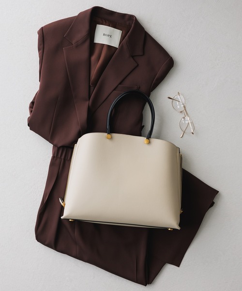 \リピーター率No.1/A4サイズは持ち歩かないけど毎日持ち物が多い働く女性必見、OLさんに最も愛されている定番デザインバッグ【デザイン】・取り外し可能なショルダーストラップ付なので、ハンドルorショルダーの2wayの持ち方が可能・MiniとLargeの中間サイズで、通勤/お仕事にも休日にも使いやすい・通勤/お仕事ではPCやA4サイズの資料は持ち歩かない方向けのサイズ・ミニバッグに入らない、折り畳み傘や日傘、500mlペットボトル・水筒が収納可能・底鋲付きでしっかりと自立・内部は、真ん中にファスナーポケット付きの3分割構造・整理整頓しやすく物の出し入れがスムーズにでき、所作が美しくみえる・持ち手の金具がアクセントになり高見えの印象に・サイドジップを開けるとカラーがのぞき、表情が変わる・マチを深くとった容量も魅力・手がふさがりがちな移動シーンに最適--------------------------------ポケット:あり(内側にオープン1,ファスナー1)A4/13インチPCの収納:不可付属ショルダー:取り外し可・調整可開閉部分:ファスナー底鋲:ありその他:マチ部分のサイドジップは開閉可--------------------------------【カラー】カラー番号:本体カラー×サイドカラー・ブラック(01):ブラック×スモーキーブルー・グレー(07):グレー×ホワイト・キナリ(16):オフホワイト×カーキ(ブラックハンドル)・ダークブラウン(20):トープ×オレンジ・ダークグリーン(31):ディープグリーン×セージグリーン※金具は濃いゴールド、グレー(07)のみシルバーです。【素材】本体はオリジナルで開発したダブルフェイススムース素材。裏地にリサイクルポリエステル素材を採用。【2026年モデル Y BAGシリーズ】・A4収納:可Y BAG Medium+(品番:GGX86190 WEB限定)Y BAG Large(品番:GGX86130)Y BAG Wide(品番:GGX86140)・A4収納:不可Y BAG Mini(品番:GGX86100)Y BAG Medium(品番:GGX86110)【E'POR(ロペ エポール)】忙しく働くハイブリットワーカーのためのエレガントと機能を兼ね備えたROPE'究極の新通勤バッグがデビュー。HYBRID WORKER をより輝かせるために、バッグを持つ不自由さから解放する「美しさ ととのうBAG」。ELEGANCE(エレガンス)× TECHNIQUE(機能) = ELEGANTIQUE(機能美)ELEGANTIQUE(機能美)によって、一呼吸する間の 3 秒で身支度を可能にした、究極の新お仕事バッグシリーズです。※こちらの商品は、SDGsの観点から不織布に包んだ形で梱包し、お届けいたします。※画像の商品はサンプルです。 実際の商品と仕様、加工、サイズが異なる場合がございます。※撮影場所やライティング、お使いのモニター環境によって色の見え方が異なる場合がございます。※商品のカラーは画像の色味をご参照ください。動画は仕様説明のため、色味が実物と異なる場合がございます。【2026 Spring/Summer】【26SS】