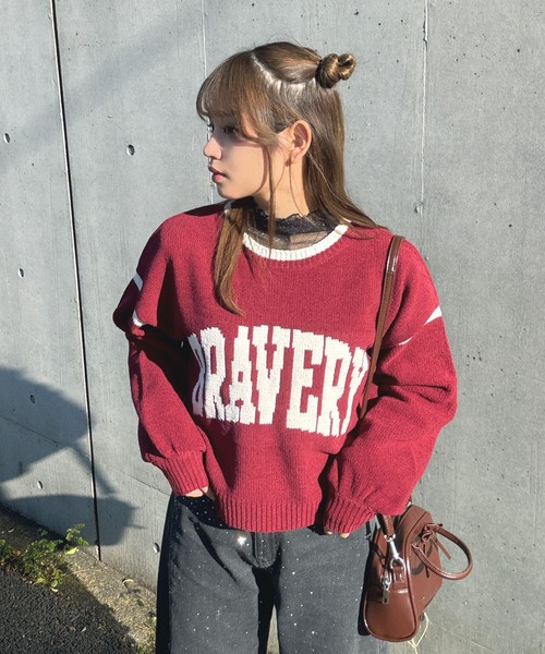 もちもちっとしたモール素材ニットにカレッジロゴデザインが目を惹く☆ショート丈ニットプルオーバーふんわりと柔らかいモールニットならではの暖かさと軽い着心地が魅力のニット。トレンド感のあるショート丈シルエットで、コンパクトな丈感がスタイルアップを叶えカジュアルからガーリーまで幅広く着まわせる万能アイテム◎1枚で主役になるフロントの大きなカレッジロゴデザインは、ストリートライクな雰囲気をプラスしつつも、デイリーコーデにあわせやすい1枚。これからの季節に取り入れたい!!アウターを羽織っても可愛く着映える優秀アイテムです。▼商品について・画像の商品はサンプルとなります。実際の商品と色味、仕様、加工、サイズ、素材等が若干異なる場合がございます。・サイト上のカラー名と、お届け商品に記載されているカラー名が異なる場合がございます。・商品の色味は、撮影場所や光のあたり具合などにより色味が違って見える場合がございます 。また、お客様のお使いのPCのモニター環境などにより色味が違って見える場合がございます。予めご了承の上ご注文下さい。▼お取り扱いについて・着用またはお取り扱いの際は、アテンションタグや洗濯ネームを必ずご確認ください。▼返品・キャンセルについて・着用、洗濯後の返品は致しかねます。・商品到着後、着用前に商品を確認して頂きますようお願い致します。♪商品のお気に入り登録お気に入り登録した商品は、ラスト1点になった時、完売商品の再入荷、セールになった時にお知らせします。♪ブランドのお気に入り登録新商品の発売、再入荷、セール情報など、ブランドのお得な情報を受け取ることができます。