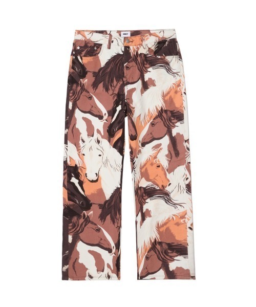 ・シャンクボタンのフロントクロージャー・5ポケットのデニムデザイン・ウエスト背面にレザーOBEYラベル・13.5オンスデニム生地を採用・バギーフィットのシルエット・テーパードレッグ