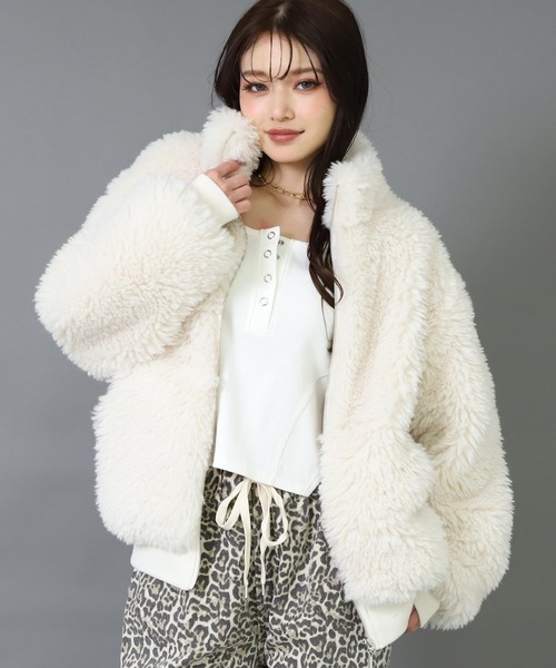 まとうだけで華やぐ、ふんわり質感のプードルファーブルゾン。 ●豊かなボリューム感がシルエットに表情をつくり、寒い季節の装いを一瞬でアップデート。 ●包み込まれるような柔らかさが、肌に触れた瞬間から心地よさを運んでくれます。 ●上品なフェイクファーが、シンプルなスタイリングにも奥行きを生み出します。 ♦detail 密度のある毛並みが、見た目にもあたたかく柔らかな印象を与えます。 肩から袖にかけてゆとりを持たせたフォルムは、インナーを選ばず快適な着心地を実現。 裾と袖口にはリブを配し、ボリュームとのバランスを整えつつ全体に立体感をプラスしています。 前を開けて羽織っても閉めてもスタイルが決まる、幅広いシーンに寄り添う一着です。 ♦styling 〇ストリート系 → カーゴパンツやロゴトップスと合わせてメリハリのあるムードに 〇フェミニン系 → タイトスカートやロングブーツで品よくまとまる冬スタイルに 〇リラックス系 → スウェットセットアップに重ねて、抜け感のあるカジュアルコーデに ♦コーデにオススメ カーゴ デザイン インパン 付き ミニ スカート(151-5877) ヘンリーネック コルセット デザイン リブ トップス(793-9392) ----------- 伸縮性・・・なし 透け感・・・なし 光沢感・・・なし 生地の厚さ・・・厚め ポケット・・・あり 裏地・・・あり ----------- ※商品のお取扱いに関しましては、商品に付属のアテンションカード、洗濯ネームをご覧ください。 ※モデル着用画像は光の当たり具合で色味が違って見える場合がございます。 ※商品の色味の目安は、商品単体の画像をご参照ください。 【お買いものをお楽しみいただく為に!】 ▼商品のお気に入り登録 完売カラーの再入荷通知や、ラスト1点の通知、セールの通知も受け取ることができます。 ▼ブランドのお気に入り登録 新商品や再入荷など、いち早くブランドのお得な情報を受け取ることができます。