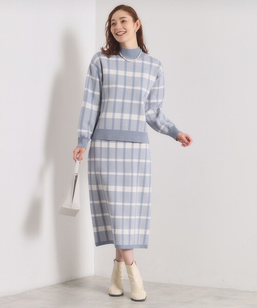 【デザイン】 コーディネートがラクしてキマル♪ 嬉しいタイパ&コスパも◎なお得なニットセットアップ。 ほんのりカジュアルな雰囲気が可愛いチェック柄のセットアップ。 ジャカード編みでしっかりとした肉感のニット地です。 トップスは首元まで暖かでコートINにも着やすいハイネックデザイン。 無地の切替でメリハリをオン。 スカートはタイトシルエットですが、ラインを絞り過ぎていないので履きやすいシルエット。 アソート柄展開。 419カラー:クラシカルな千鳥柄 452・491カラー:女性らしい柔らかなカラーリングのビックチェック柄 464カラー:カジュアルな雰囲気の幾何柄 【素材】 柔らかな肌触りのレーヨン混ニット素材。 【仕様】 スカート ・ポケットなし ・ウエスト総ゴム ・裏地なし ※ブルー(491)ベージュ(452)はやや透け感があるため、インナーの着用をおすすめします。 ※照明の関係により、実際よりも色味が違って見える場合があります。また、パソコン・スマートフォンなどの環境により、若干製品と画像のカラーが異なる場合もございます。 ---------------------------------------- ★お気に入り登録がおすすめ★ ▽気になる商品はハートマークをクリック! ・再入荷やセールの通知をお知らせ ・お気に入り一覧からいつでもチェック ▽ブランドのお気に入り登録も! ・新商品やお得な情報をいち早くお知らせ ---------------------------------------- モデル情報:身長171cm B80 W59 H88 着用サイズ:00(フリーサイズ) 店舗へのお問い合わせ商品番号:P93-54009 ●製品寸法: 00(フリーサイズ):トップス着丈54cm B96cm 袖丈52cm 肩幅50cm スカートW62~68cm H92cm 総丈76cm 備考:
