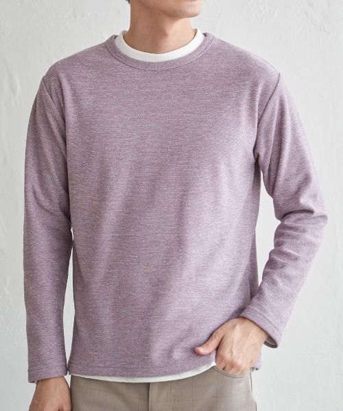 ちょうどいいバランスで着られるセットアイテム。 メランジ特有の奥行きある表情に、裏起毛のやわらかなタッチが加わり、秋冬のスタイリングに自然なあたたかみをプラスします。 単品使いはもちろん、セットで着ることで簡単にレイヤード感のある着こなしが決まるのが最大の魅力。 【素材】 メランジ調。 裏起毛鹿の子素材です。 【デザイン】 2枚で1セットのアンサンブル。 インナーはモックネックデザインで冬の寒い時期でも首回りがあたたか。 【ikkaポイント】 ウォーム感のある素材で仕上げたアンサンブル。 セットのアンサンブル商品なので単品としても使えて汎用性も高く、裏面が起毛素材になっており着心地の良いアイテムです。