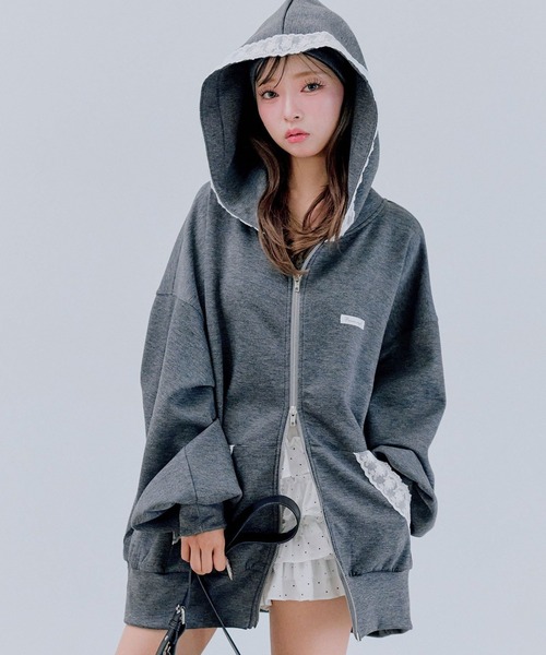 さりげない甘さがちょうどいいパーカーご好評につき新色イエロー/ピンク/サックスが追加で登場!他のカラーはこちら■デザイン・フードやポケットにレースが施された、程よくガーリーな印象に仕上げたデザイン。・ゆったりと着れる大きめサイズなので、女の子らしい着こなしも体型カバーも叶います。・ダブルジップ仕様で上下の開け具合を調節できて、抜け感をプラスできます。・さらっとした肌触りで分厚すぎない素材なので、ロングシーズン着用していただけます。■カラー・イエロー/ピンク/サックスの3色展開■スタイリング・ミニ丈のボトムを合わせてすっぽり着るのがおすすめ。・デニムなどのパンツ合わせでゆるっとしたカジュアルコーデもかわいいです。-----------------------------裏地:なし光沢感:なし透け感:なし伸縮性:なし手洗い:可能タンブラー乾燥:不可アイロン:110℃まで-----------------------------model:161cm/164cm※着用、お取り扱いの際は、商品についている品質表示とアテンションタグを必ずご確認下さい。※ご覧のモニター環境や撮影環境により実際の商品と多少色味が異なって見える場合がございます。ご理解の程よろしくお願いいたします。※引っかけ注意・粗い組織のものや、表面に凹凸があってルーズな組織のもの表面に糸が浮き出ているものは、ちょっとした不注意から引っかけてしまいがちです。取り扱いの際は取り扱い絵表示確認の上、十分注意してください。・着用時にベルトや、バックや周囲の壁など表面の粗いものとの摩擦や引っかかりに注意してください。・水洗いやクリーニングの際にも他の物ものとの引っかかりに注意して下さい。■お気に入り登録のおすすめ【気になるアイテムを登録】ハートをクリックしてお気に入りに登録すると完売カラーの再入荷やラスト1点の通知、セールの通知を受けとることができます。【ブランドを登録】新商品や再入荷、セール通知など、いち早くブランドの情報を受けとることができます。