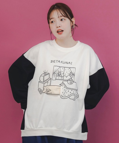 + ScoLar Parity商品 + 窓の外にはウサギのかたちをした雪だるまと一面の雪景色。 一方、おうちの中は──… テレビを見ながらこたつでぬくぬく過ごすクマとネコの姿が! そんなクマを引っ張ってみると、からだがびよ~んと伸びるだけでこたつからは出てこない…!? こたつから出ずにリモコンを取ろうとする、なんともだらーんとした姿が微笑ましい パリティらしい遊び心たっぷりなデザインとなっております♪ (※クマはスナップボタンで固定可能・こたつ部分に収納もできます。) カラーは配色がオシャレな01(オフホワイト)・07(杢グレー)・09(ブラック)の3色展開。 こたつから出たくないクマに、冷ややかな目の雪うさぎ、そしてお尻が出てるネコ… 冬のぐうたら感が愛おしい、そんなユーモアたっぷりなプルオーバーはいかが? ●model:Hana. 160㎝/63inch ●model:Satoru 170㎝/66.5inch ●model着用:01(オフホワイト) (着用商品はサンプルの為、実際のデザインと変更がある場合がございます) ーーーーー 裏地:なし 透け感:やや透け感あり 生地の厚さ:普通 生地感:やわらかめ 伸縮性:ややあり ポケット:(こたつ部分)あり ーーーーー ※ 刺繍使用 ※ アップリケ使用 ※ スナップボタン使用 取り扱いのご注意: ※この製品は摩擦や水濡れにより色落ちにすることがありますのでご注意ください。 ※この製品は生地独特な風合いを出すために、製品加工してあります。(製品は1点、1点多少表情が違います) ※この商品は糸及び編組織の性質上、引っ掛け・引っ掛かりやすい為、着脱時や取り扱いにご注意下さい。 ※この商品は刺繍を使用している為、糸及び編組織の性質上、引っ掛け・引っ掛かりやすい為、着脱時や取り扱いにご注意下さい。