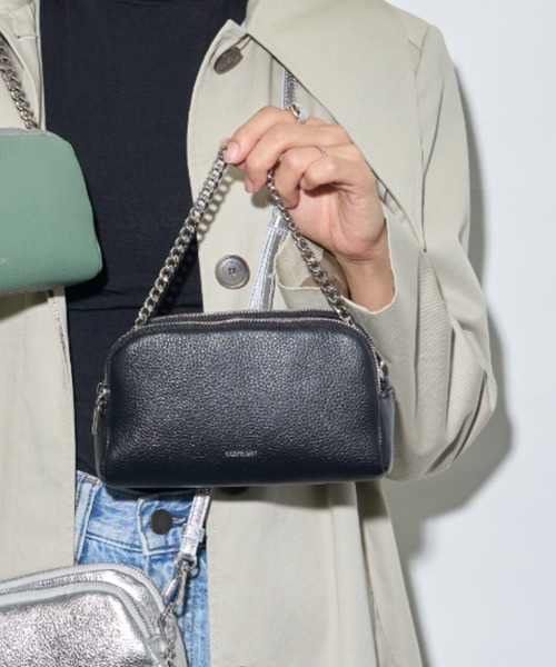 ぽてっとしたシルエットが魅力のハンドル&ショルダーバッグ。3つのポケットで小物の整理がしやすく、カードポケット付きだから小さなコインケースをあわせるだけでお財布いらずです。 チェーンハンドルでドレスアップにも、ショルダーストラップでカジュアル&アクティブにも。 シーンに合わせて表情を変える、おしゃれな相棒です。 [素材]表地:牛革 裏地:ポリエステル [サイズ]W 18.5 × D6.0 × H10.0cm 350g [商品仕様]内側:カードポケット 3個 ファスナーポケット 1個 オープンポケット 1個 キーチェーン1個 [原産国]中国 [商品コード]40532281