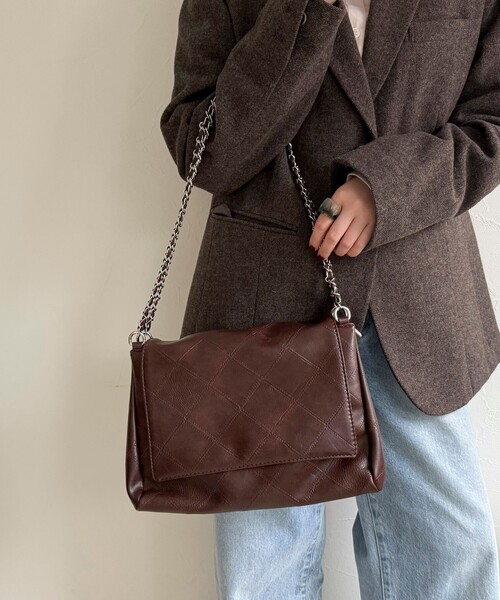 ◇fredy emue◇【2025 AW】大人っぽく持てるチェーンショルダー●point・キルティングのダイヤデザインで高級感と上品さをプラス・チェーンショルダーで肩掛けがお洒落に決まります・フラップ仕様でバッグの中身が見えないのも嬉しいポイント・3つに分かれた仕切りで小物を整理しやすく収納力も◎・カジュアルからきれいめまで幅広くコーディネートでき、大人の秋冬スタイルにぴったりなアイテム《収納の目安》・長財布・スマートフォン・イヤホン・タオルハンカチ・ポケットティッシュ◇商品のお気に入り登録◇【お気に入りに登録】を是非ご活用ください。 再入荷の通知がいち早く届きます。●お取扱い上のご注意●*アテンションタグを必ずご確認の上、着用又はお取り扱い下さい。*店頭及び屋外での撮影画像は、光の当たり具合で色味が違って見える場合があります。商品の色味は、スタジオ撮影の画像をご参照下さい。*商品画像に関しては出来る限り忠実に表示出来るよう努めておりますが、お客様がご利用のモニターの設定及び特性により、実際の商品と比較し色味に若干の誤差が生じる場合があります。*生地の特性上、やや匂いが強く感じられるものもございますので予めご了承下さい。*雨や汗による、濡れた状態での使用は、色落ちや色移行の原因となる場合がありますので十分にご注意下さい。※サンプルでの採寸のため、サイズ表はあくまで目安となります。予めご了承ください。