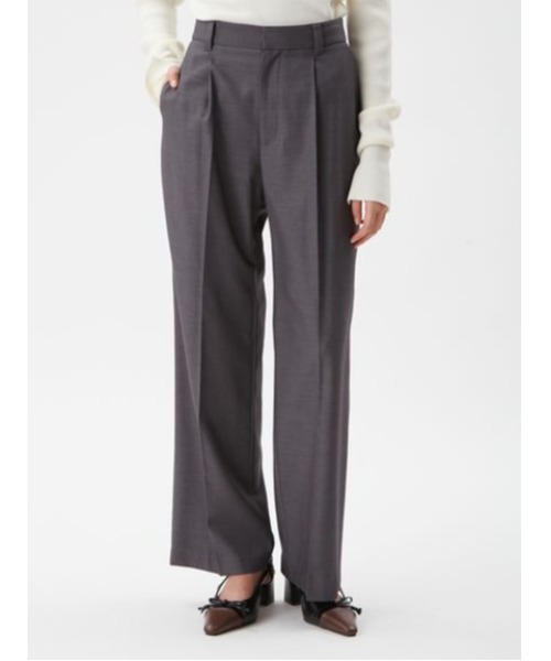 【タックのラインが美脚を演出。定番センタープレスパンツに新色が入って再登場】【Design/Styling】ミラオーウェン人気のセンタープレスパンツが再登場。ワンタックが入っていることで太もも周りは程よいゆとりがありながら、センタープレスをしっかり入れる事ですっきり綺麗めな美脚が実現。シルエットはストレートでワイドすぎないのがポイントです。シーンを選ばず、さまざまなアイテムと合わせて楽しめます。【Fabric】程よく厚みがある生地で、ウール混の生地を使用しています。カラーは豊富な3色をご用意。スマートな大人色の<グレー>、モダンな色調の<キャメル>、ベーシックで万能な<ブラック>で展開しています。※照明の関係により、実際よりも色味が違って見える場合があります。またパソコン・スマートフォンなどの環境により、若干製品と画像のカラーが異なる場合もございます。予めご了承ください。商品の色味は、商品単品画像をご参照下さい。 ※商品画像はサンプルのため、色味やサイズ等の仕様に変更がある場合がございますので、予めご了承ください。