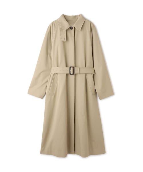 【デザイン・シルエット】 肩にゆとりを持たせたラグランスリーブデザインで、ジャケットの上からでも快適に羽織れるステンカラーコート。ビジネスや通勤はもちろん、入学式・卒業式などのセレモニーシーンにも対応できる、幅広いシーンで活躍する万能アウターです。 ウエストには共生地のベルトとチンタブを備えており、締めることでシルエットにメリハリをつけたり、前を開けてラフに着こなしたりと、スタイルに合わせて表情を自由に変えられるのも魅力です。 【おすすめのスタイリング】 前をしっかり閉めてウエストベルトでウエストマークすると、女性らしいシルエットで着こなせます。 【素材】 高密度の綿100%糸を使用し、染め工程を2回行ったうえで特殊樹脂加工を施すことで、綿素材ながら上品でソフトな膨らみのあるタッチに仕上げています。 ---------------------------- 透け感:なし 裏地:あり 伸縮性:なし 光沢感:なし 生地の厚さ:中間 ポケット:あり 開き方:ボタン ---------------------------- 【モデル情報】 モデル身長:175cm 着用サイズ:38 ※画像の商品はサンプルです。実際の商品と仕様、加工、サイズが異なる場合がございます。 ※撮影場所やライティング、お使いのモニター環境によって色の見え方が異なる場合がございます。 ※商品のカラーは画像の色味をご参照ください。動画は仕様説明のため、色味が実物と異なる場合がございます。