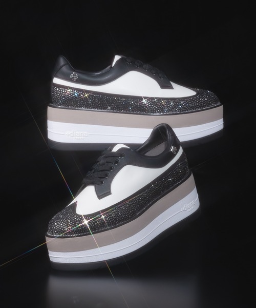 ■デザインデザイン性・履き心地・仕立ての丁寧さにこだわった、プラスダイアナの中でも特別な価値をもつ、Made in Japanの『プレミアムライン』。クラシカルなウィングチップデザインに、6cm厚のボリュームソールを合わせたハイブリッドな一足。ぎっしりと敷き詰めたラインストーンがラグジュアリー煌めき、クラシカルな佇まいに抜け感をプラスします。いつものコーディネートをさりげなく格上げしてくれる一足です。■こだわりポイント日本国内での仕上げ工程の「MADE IN JAPAN」製甲とアウトソール生産はラグジュアリーブランドを手掛ける海外ファクトリー、見た目の美しさや履き心地を左右する底付け・仕上げ工程は、技術力の高い日本国内のファクトリーにて行うことにより、「MADE IN JAPAN」の高品質を実現。特殊構造のEVA3層ソールを独自開発上層はふわっと柔らかなクッション性の高いEVA、中間層は適度な硬さで反発性のあるEVAで疲れを軽減。底面には滑りにくいラバーを組み合わせた3層構造で快適性と安定感を両立。カップインソール × 人工皮革スニーカーのように足全体を包み込むカップインソールを採用。一般的なクラシカルデザインの靴には搭載されない仕様で、長時間履いても疲れにくい快適さを実現。アッパーには、軽さ・耐久性・お手入れのしやすさを考慮し、高品質な人工皮革を採用。プレミアムライン専用のオリジナルパーツと押縁ディテールブランドロゴ「+」「p」「d」をモチーフにしたオリジナルパーツを採用し、特別感と高級感をプラス。また、靴底とアッパーの境目に施した細い縁飾り「押縁」を取り入れることで、クラシカルでかっちりとした印象に仕上げています。※本体のラインストーンは熱圧着で固定されていますが、強い衝撃が加わると脱落する可能性があるので歩行の際はご注意ください。※商品画像は照明や光の当たり具合、パソコン・スマートフォンなどの閲覧環境により、実際の色味と異なって見える場合がございますので、あらかじめご了承ください。---------------------------------【+diana(プラスダイアナ)】レディースシューズ “DIANA(ダイアナ)” のスニーカーブランド。カジュアルになりすぎず、「大人らしく」「女性らしく」「スタイルよく」履けるファッションスニーカーを、豊富なラインナップで展開。スマートなスタイルに遊び心をプラスした、今のライフスタイルを楽しむ大人の女性のためのスニーカーブランドです。---------------------------------■お気に入りアイテムに登録!在庫ラスト1点、再入荷、セールなど商品情報をお知らせします。ハートマークをクリックするだけでお気に入りに追加できます!■お気に入りブランドに登録!新商品や再入荷など【+diana(プラスダイアナ)】の最新情報を受け取ることができます。「お気に入りブランドに追加」をクリックして是非ご登録ください!