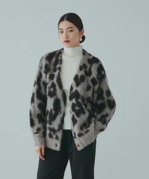 ●POINT 大きめのレオパード柄が目を引くジャカードシャギーニットカーディガンです。 腰位置から裾にかけてストンと落ちるシルエットなので、様々なボトムスを合わせやすいのが魅力です。 パンツスタイルだとクールな印象に、ナロースカートをあわせてモードなスタイルに導きます。 インパクトの出やすい大柄は、毛足感のある素材を使用することでラインが曖昧になり、優し気な空気を纏い、大人の方でも着やすい一枚に。 ---------------------------------- 透け感:なし 厚さ: やや厚い 伸縮性:あり 裏地: なし ポケット: なし ---------------------------------- ---------------------------------------------------------------- 洗濯方法 家庭洗濯:家庭での洗濯禁止。 アイロン:底面温度120℃を限度としてアイロン仕上げができる。 ドライクリーニング:石油系溶剤による弱いドライクリーニングができる。 ---------------------------------------------------------------- ■モデル身長 165cm 着用サイズ M ※画像の商品はサンプルとなりますので実際の商品と仕様、加工、サイズが若干異なる場合がございます。 ※お客様のモニター環境により実際のお色と多少異なる場合がございます。 ※撮影状況や光の当たり具合により、色合いが異なって見える場合がございます。 ---------------------------------- ▼商品のお気に入り登録 ハートマークをクリックし、お好きなカラーを選んでお気に入りに登録 完売カラーの再入荷通知や、ラスト1点の通知、セールの通知も受け取ることができます。 ▼ブランドのお気に入り登録 新商品や再入荷等、いち早くブランドのお得な情報を受け取ることができます。 ----------------------------------