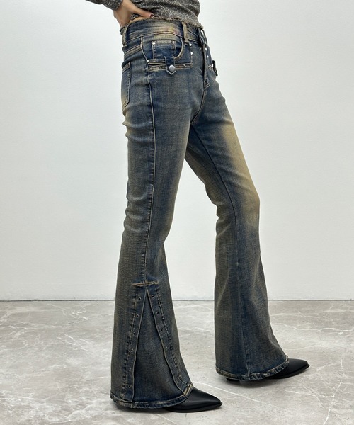 韓国Y2Kガールの間で人気急上昇中の、スタッズ付きフレアデニムパンツ。ウォッシュ加工による色ムラとフェード感が、ヴィンテージライクな抜け感を演出。ウエストラインのスタッズディテールがポイントになり、トレンドのクロップドトップスとの相性も抜群。膝下から自然に広がるフレアシルエットが脚を長く美しく見せ、スタイルアップ効果も◎ストリートにもクラブスタイルにも馴染む、Y2Kムード全開の主役級デニムです。■ カラー ブルー【生地感】--------------------------裏地:なし透け感:なし生地の伸び:あり光沢感:なしポケット:あり--------------------------*ご覧のモニター環境や撮影環境に応じて実際の商品の色と異なって見える場合がございます。ご了承ください。*素材の特性を考慮して管理法留意事項を購入/着用する場合は必ずご確認をお願いします。*サイズの測定方法によって1~3cm程度の誤差が生じることがございます。*全ての商品の最初の洗濯はドライクリーニングをお勧めし、乾燥機のご使用はご遠慮ください。*洗濯不注意による商品の損傷の交換/払い戻しのご対応は難しくなっております。【商品のお気に入り登録】お気に入りの商品やサイズ・カラーまで、お気に入りの登録をしていただきますと、そのアイテムのセールの通知、ラスト1点になった時の通知や、完売しても再入荷通知を受け取ることができます。【ブランドのお気に入り登録】新商品の発売や再入荷、タイムセール情報やクーポン発行のお知らせなど、FOLLOWINがお届けするお得な情報を受け取ることができます♥ ▶ブランドの最新情報はinstagram【@followin】でご確認いただけます!* 注文履歴ページよりご注文いただいた商品の配送時間を確認できます。* 他のキャンペーンにより、価格が変わる場合があります。※他のキャンペーンにより、期間中に価格が変動する場合があります。※セールは予告なく終了させていただく場合もあります。