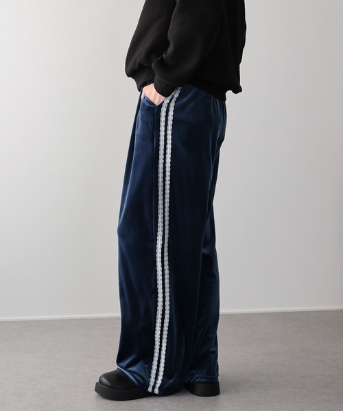 【2025AW】さりげない甘さが目を惹くベロアパンツ◦POINT光沢感のあるベロア生地に女性らしいレースを施したサイドレースパンツ。サイドにあしらったホワイトレースが、スポーティーなスウェットにフェミニンなアクセントをプラス。光沢感のあるベロアがシーズンライクで、上品な雰囲気を演出します。ウエストゴムと紐の仕様でリラックス感があり、ストレスフリーな着心地に。様々なスタイルで着用でき、デイリーに活躍するオススメの一枚です。◦STYLINGTシャツやスウェットを合わせてラフな大人カジュアルスタイルに。コンパクトなニットと合わせて上品な印象のスタイルにも。いつものトップスに合わせるだけでトレンド&シーズンライクなコーデが完成します。スニーカーはもちろん、ショートブーツとも好相性。ワンマイルからお出かけスタイルまで、幅広く活躍します。◦DETAILサイドホワイトレースウエストゴム&紐でサイズ調節可能両サイドポケット付き◦FABRICほどよい光沢感のあるベロア素材[ コーディネート ][ 商品のお気に入り登録 ]完売カラーの再入荷通知や、値下げのお知らせ、ラスト1点の通知などが受け取ることができます。随時再入荷していますので、お気に入り登録して頂くと再入荷情報がGET出来ます。[ ブランドのお気に入り登録 ]新商品の発売や再入荷、タイムセールやクーポン発行のお知らせなどBLUEEASTのお得な情報を受け取ることができます。ぜひご登録ください♪※撮影環境により、モデル着用画像は実際の商品と色味が異なって見える場合がございます。また、PCやスマートフォンの環境により画面上と実物では多少色が異なって見える場合がございます。トルソー画像が実際の商品に一番近いお色となりますのでご確認ください。