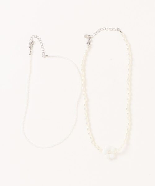 ■デザイン■ トップに付いたお花がPOINTのネックレス。 単体でももちろん、うれしい2本セットなので重ね付けしてもOK! 首元がさみしい時や、タートルネックの上から付けてもかわいいです。