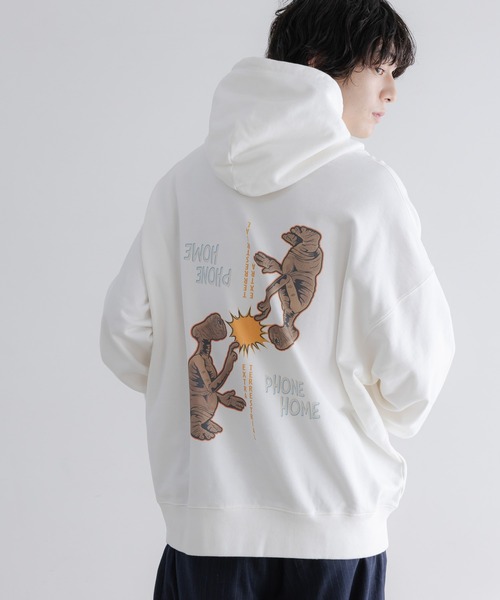 ■デザイン映画『E.T.』とのスペシャルアイテム。フロントロゴに加え、バックにはE.T.のキャラクターアートをプリントした遊び心と可愛さのあるフーディーに仕上げています。【E.T.】『E.T.』(イーティー、原題: E.T. The Extra-Terrestrial)は、1982年のアメリカのSF映画。製作・監督はスティーヴン・スピルバーグ、脚本はメリッサ・マシスンが務め、ディー・ウォレス、ヘンリー・トーマス、ピーター・コヨーテ、ロバート・マクノートン、ドリュー・バリモアなどが出演した。地球に取り残された地球外生命体(E.T.)と少年エリオットとの交流を描いた物語。